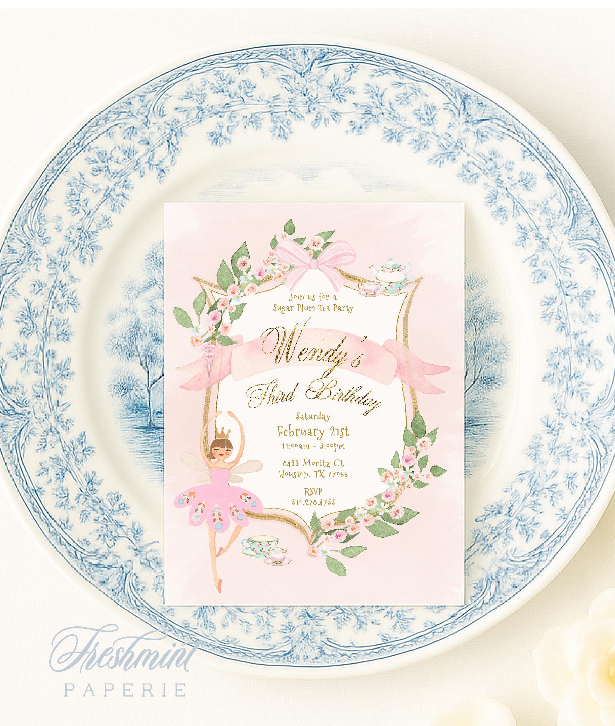 Sugar Plum Tea Party invitation, Nutcracker, Winter Onederland, Ballerina, Grandmillennial, Tutu