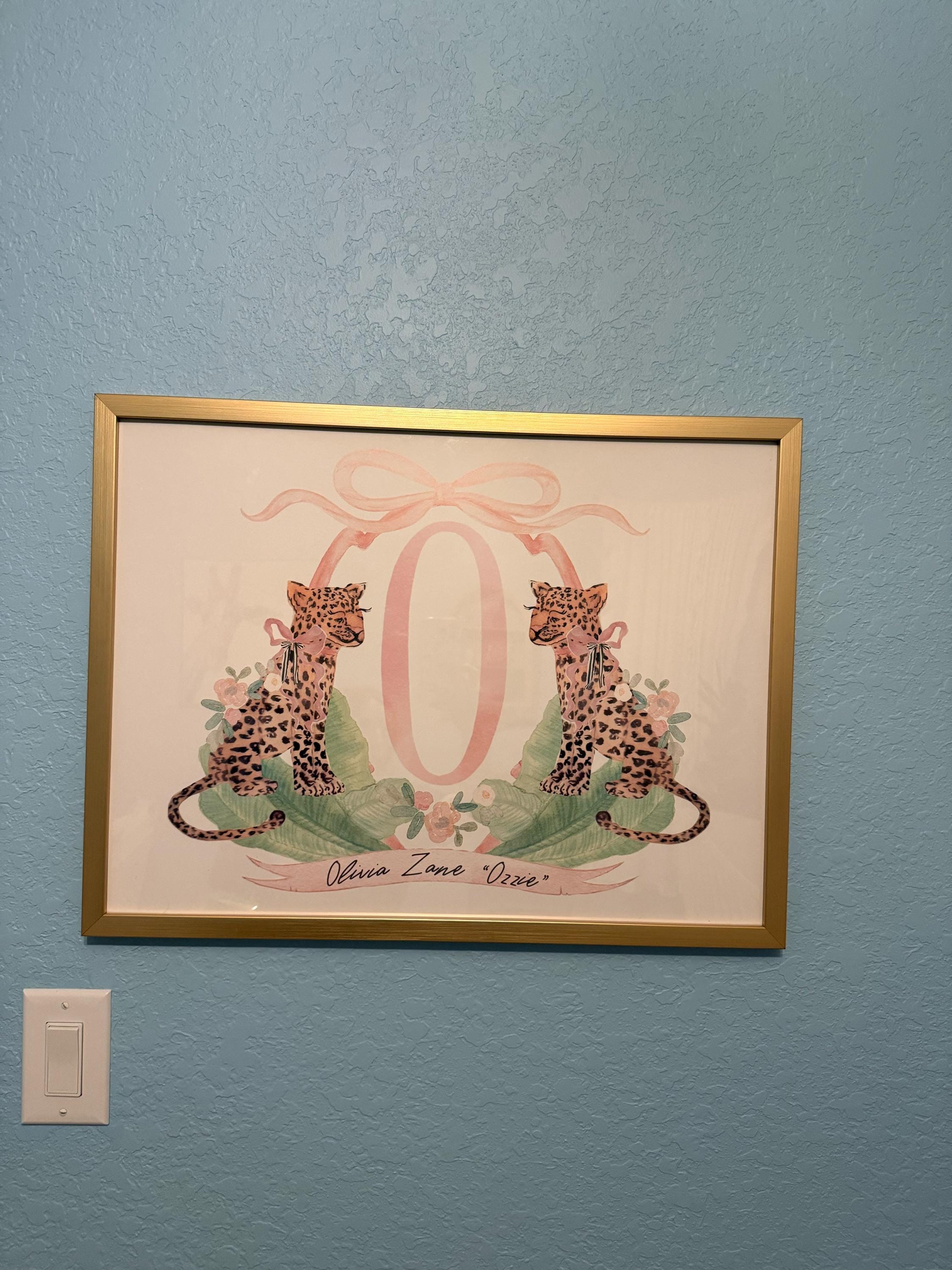 Cheetah Nursery Art Print, Safari, Monogram, Crest, Pink Bow