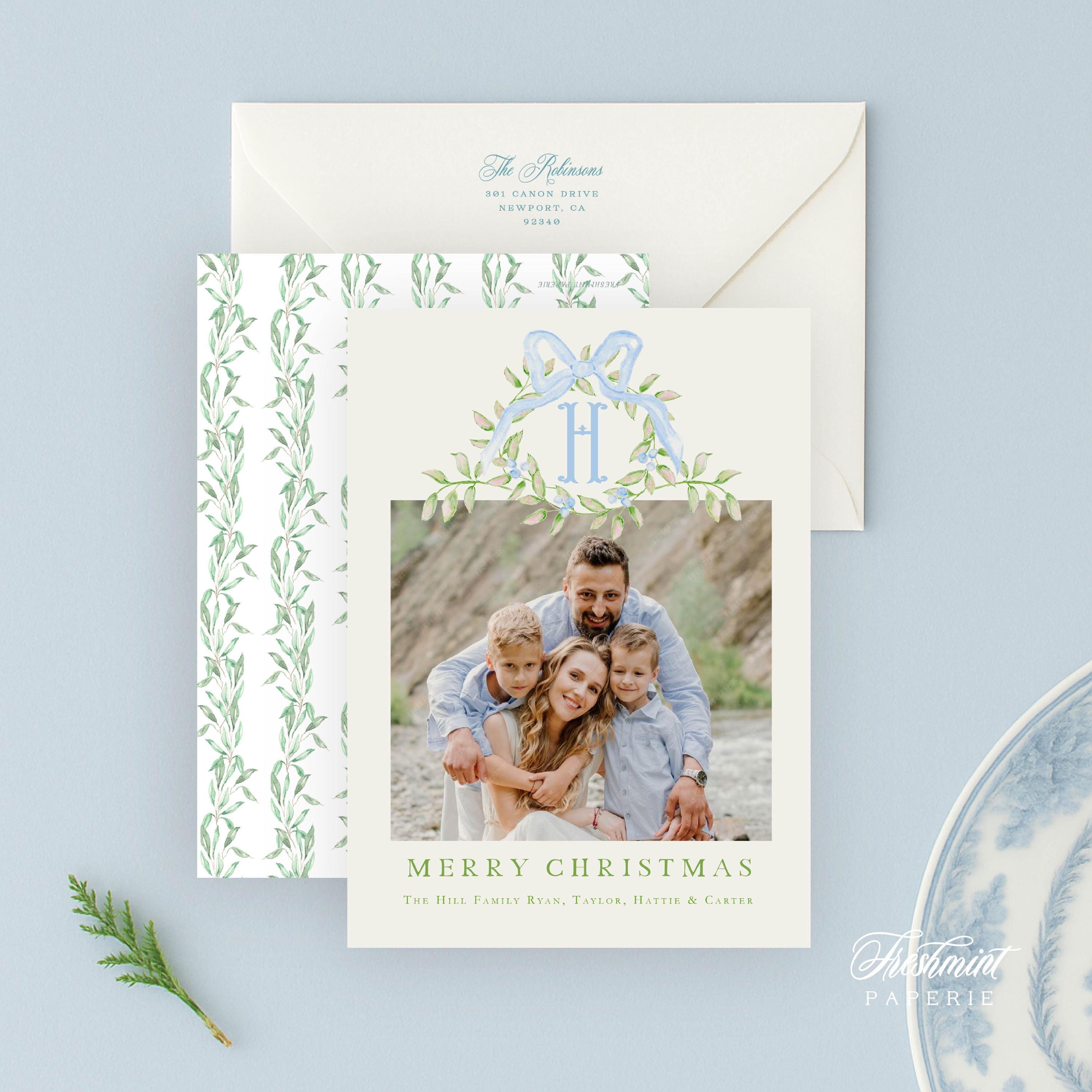 Blue Floral Photo Holiday Cards: Gingham Christmas Card