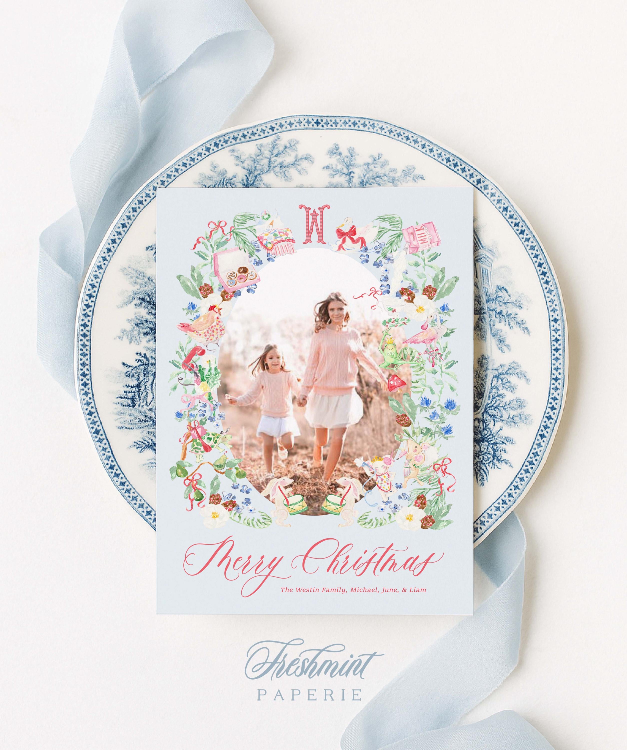 Floral Photo Christmas Cards, Whimsical Watercolor Holiday Cards