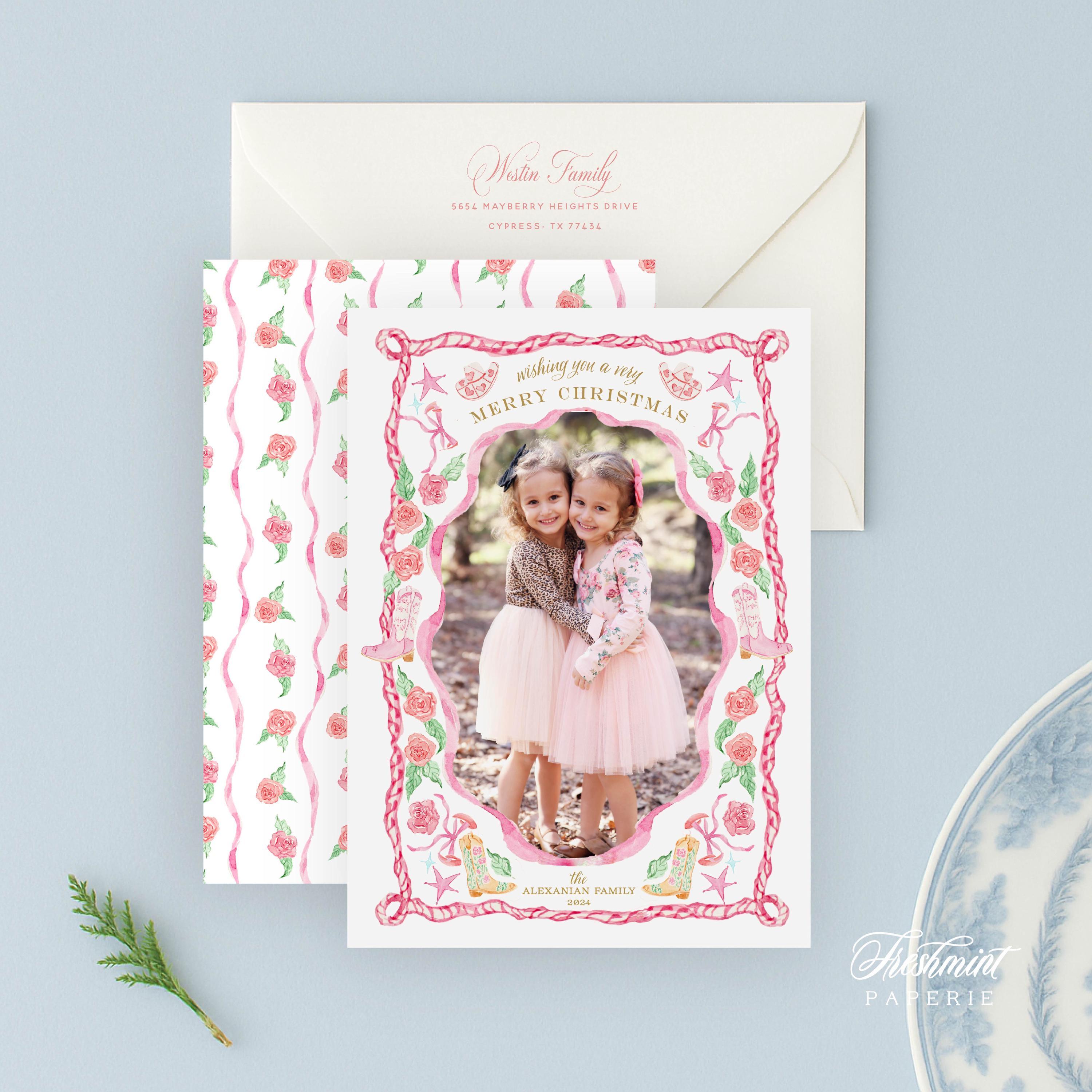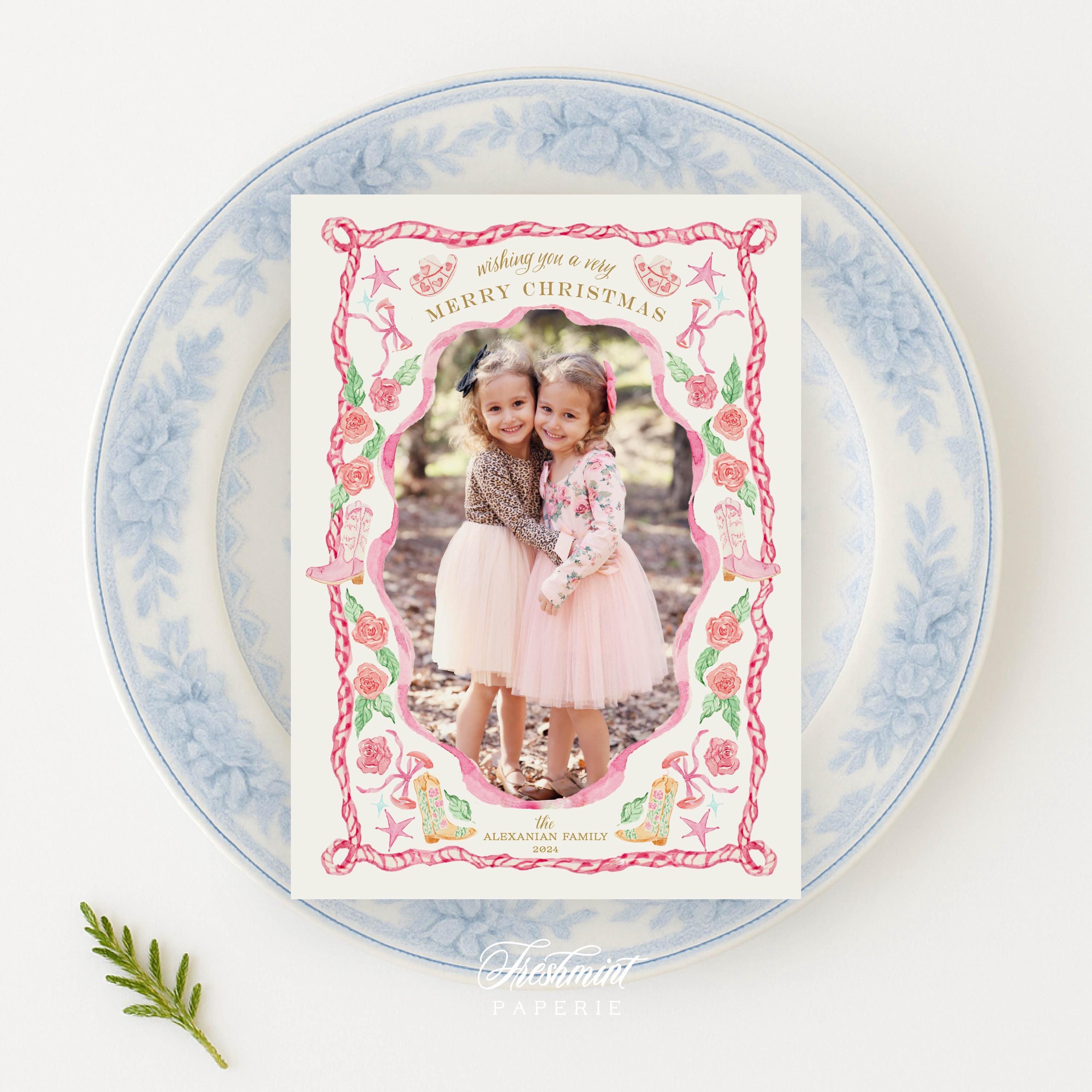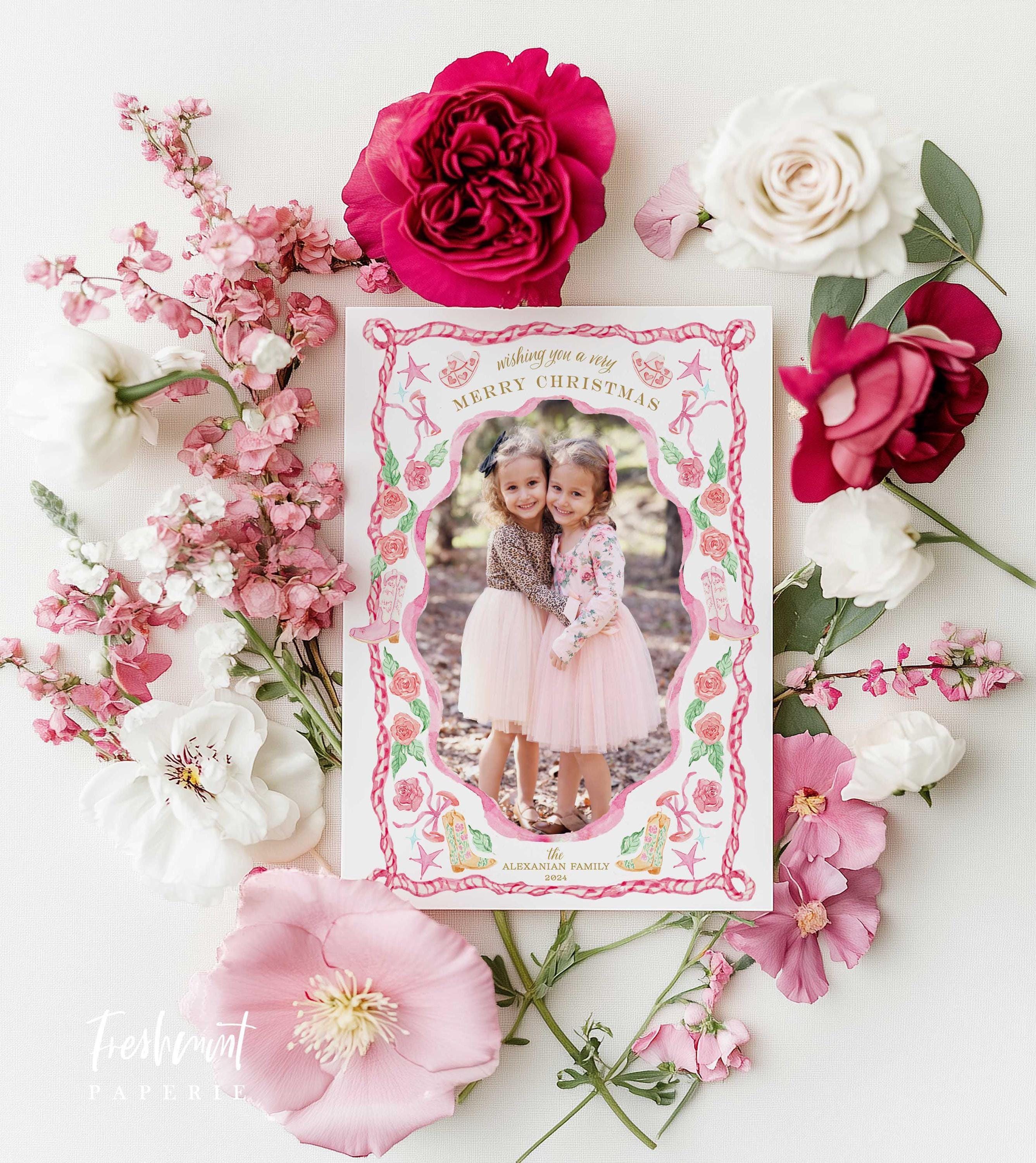 Pink Cowgirl Christmas Photo Cards: Western Holiday Design