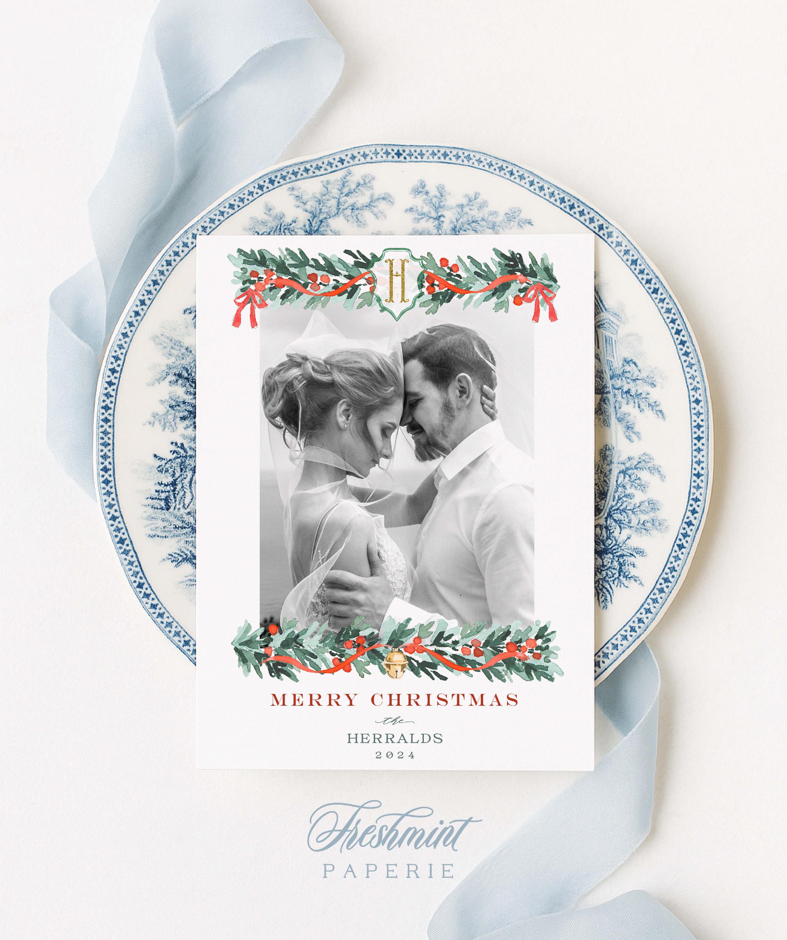 Garland Christmas Photo Cards, Red Ribbon Holiday Cards