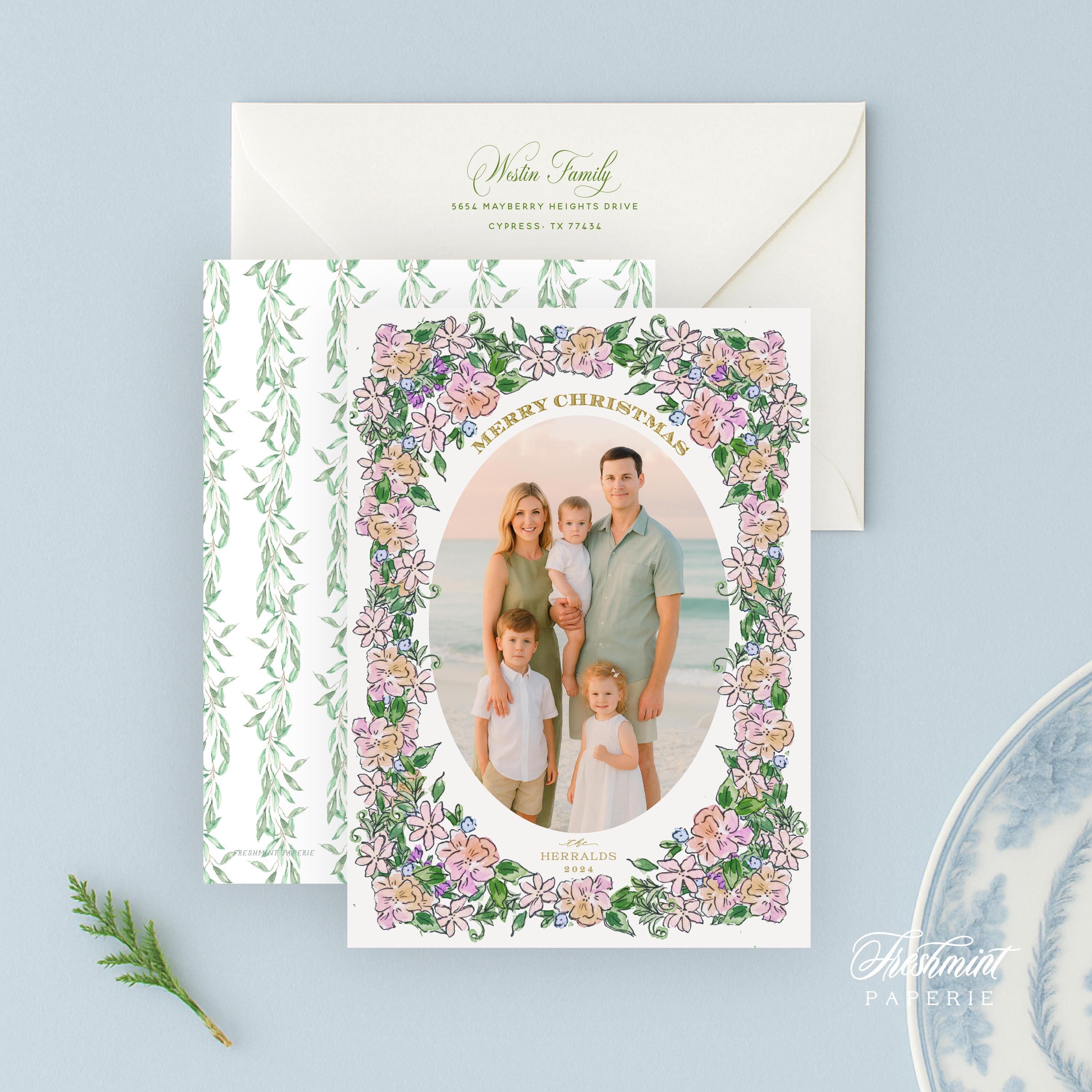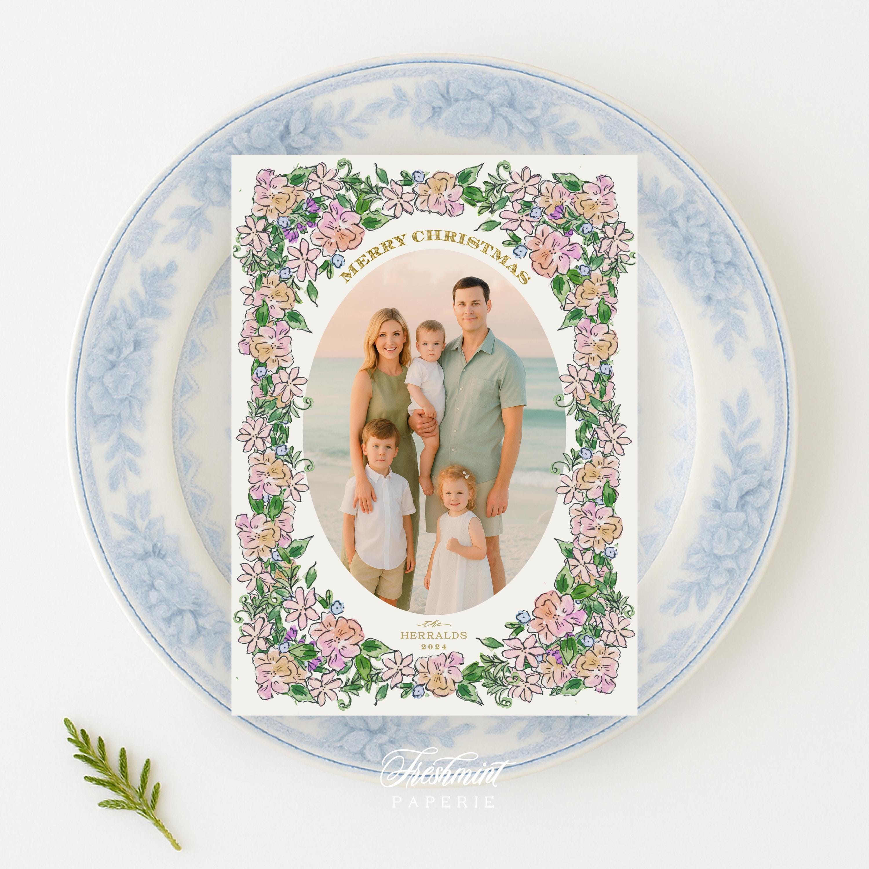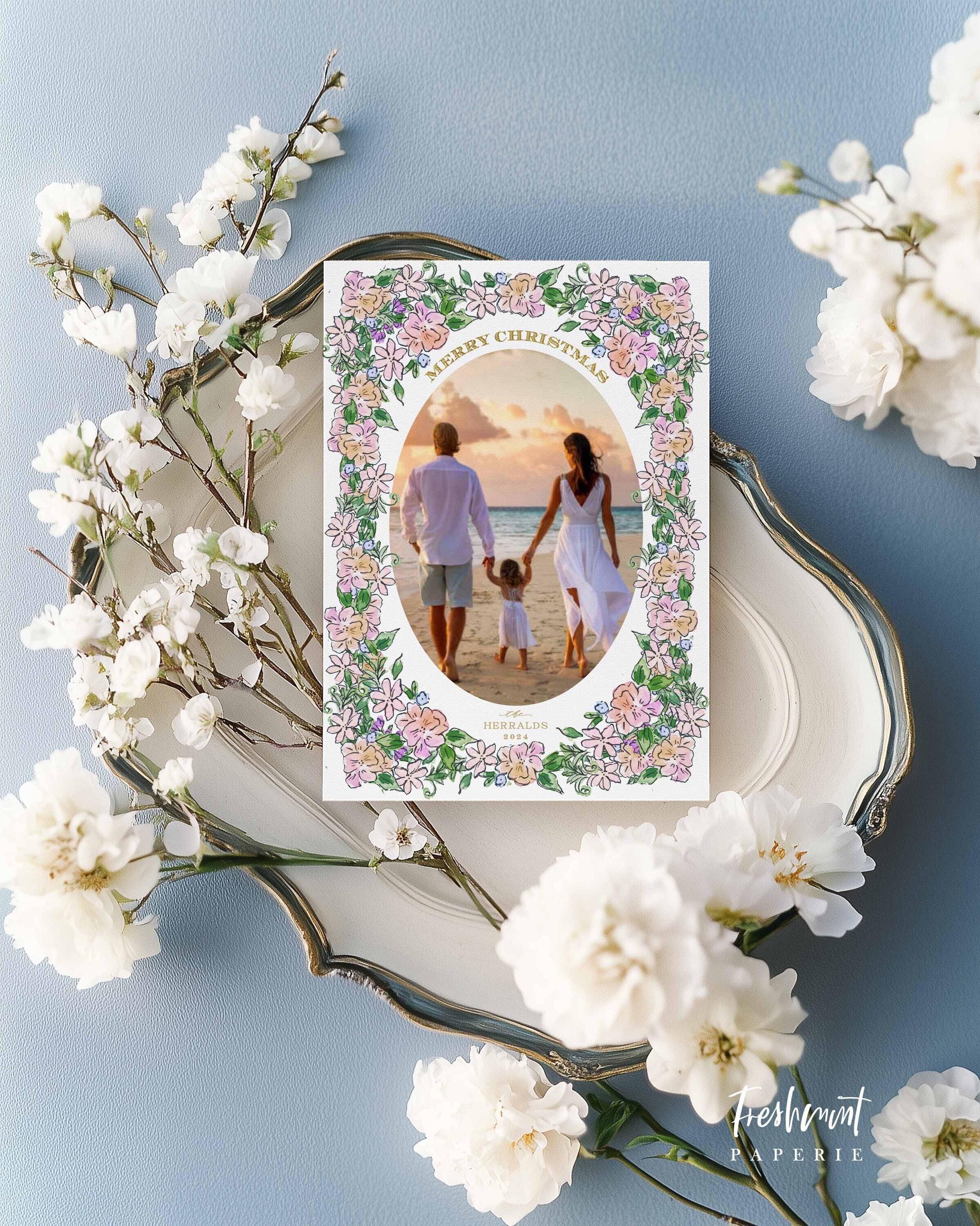 Pink Floral Christmas Photo Cards: Watercolor Holiday Design