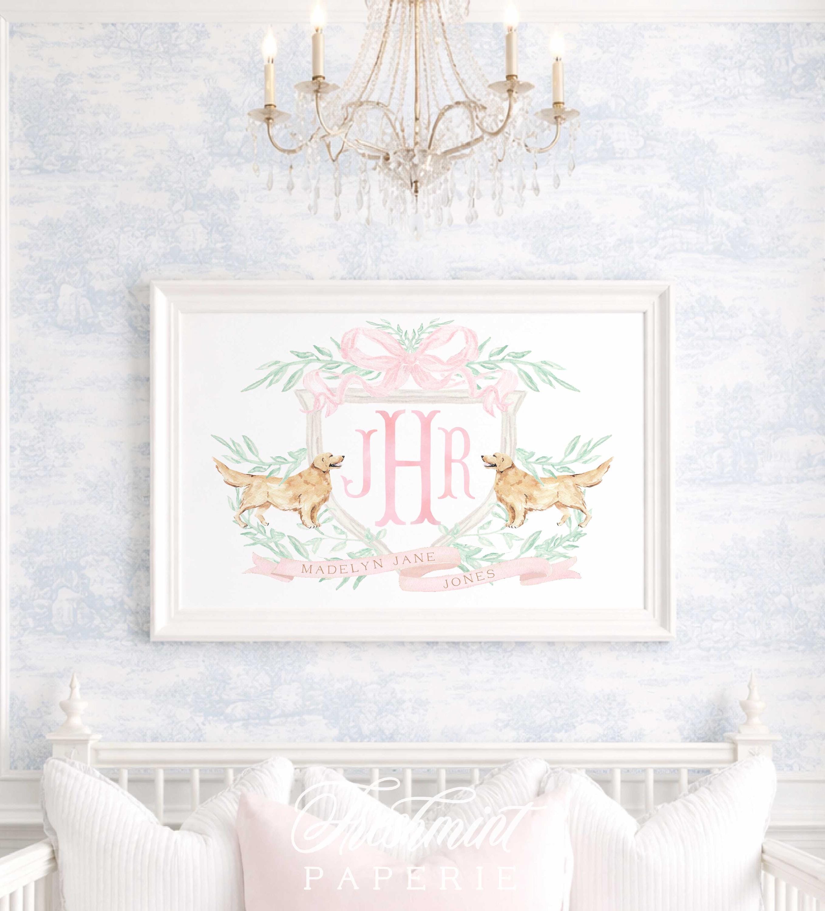 This listing features beautiful custom wall art designed to be the centerpiece of your little one’s nursery!