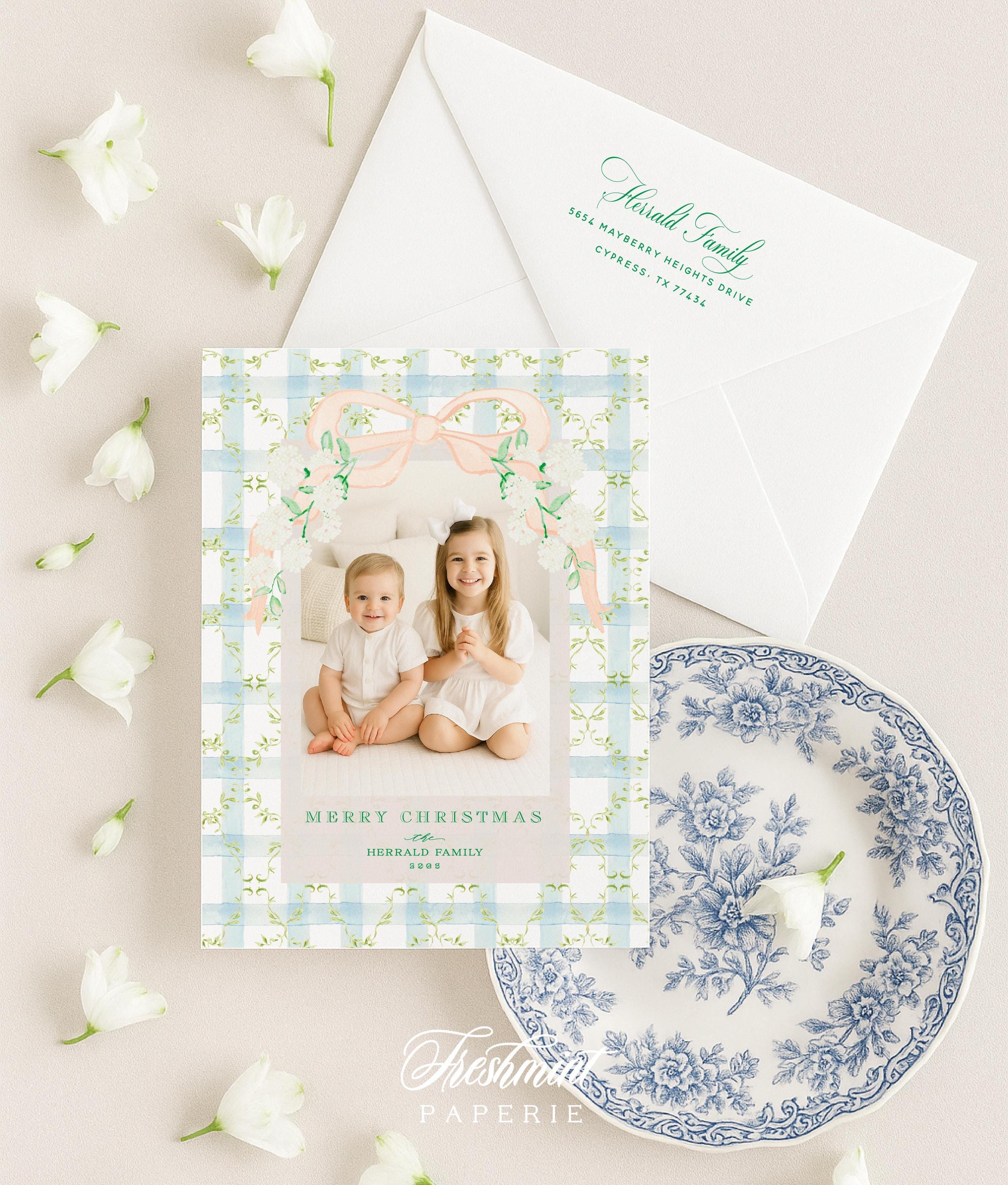 Gingham Photo Christmas Cards: Watercolor Holiday Cards