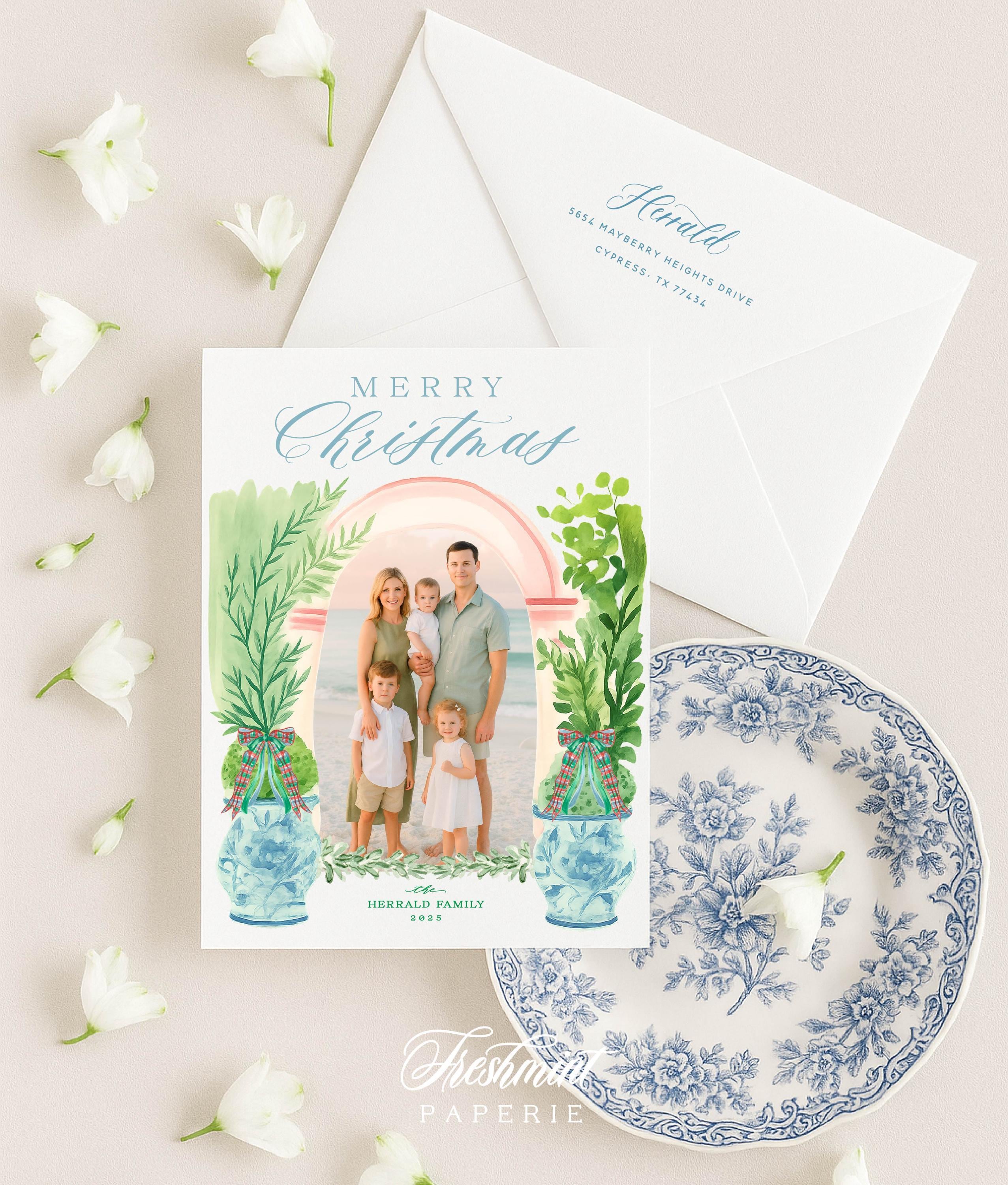 Chinoiserie Wreath Photo Christmas Cards: Custom Holiday Cards