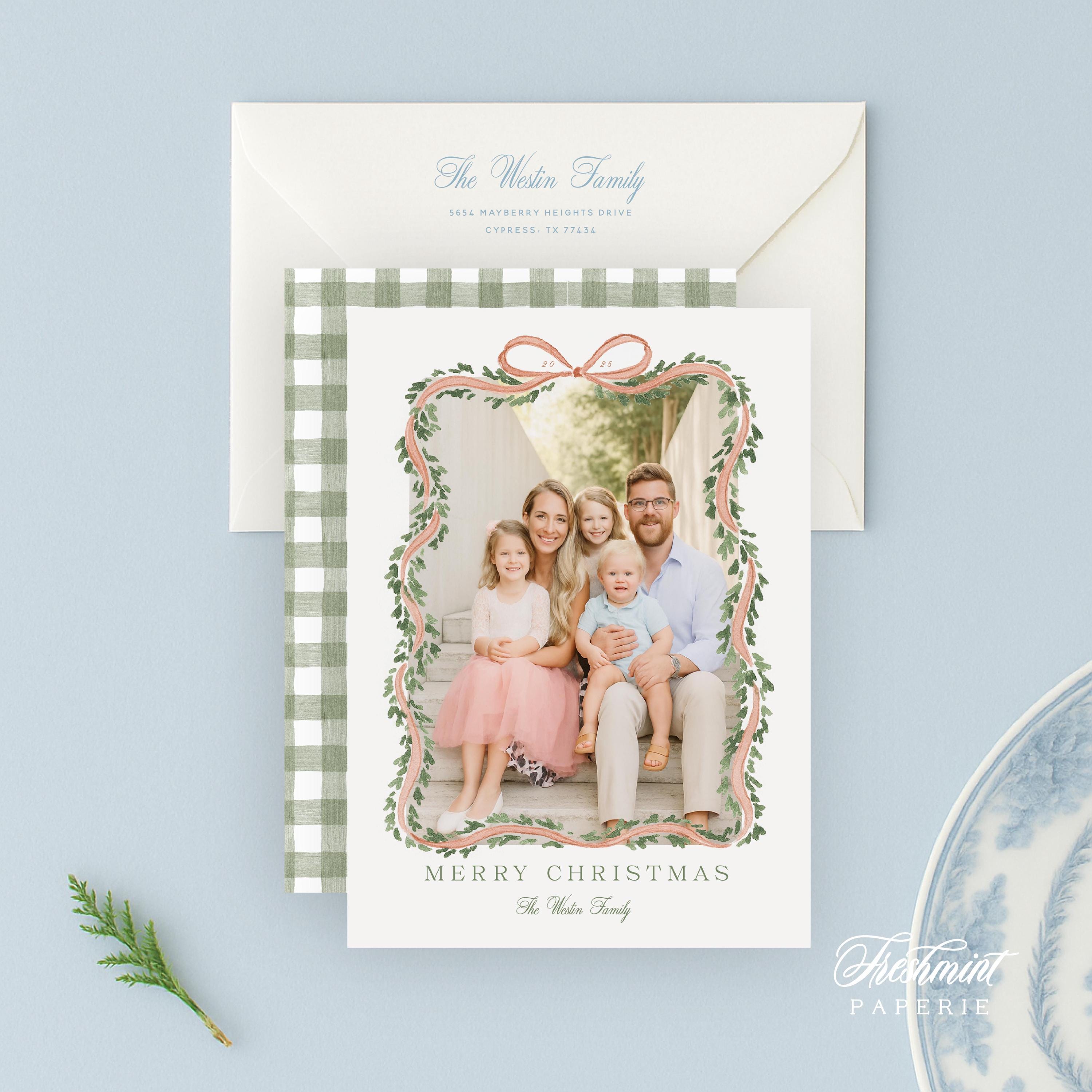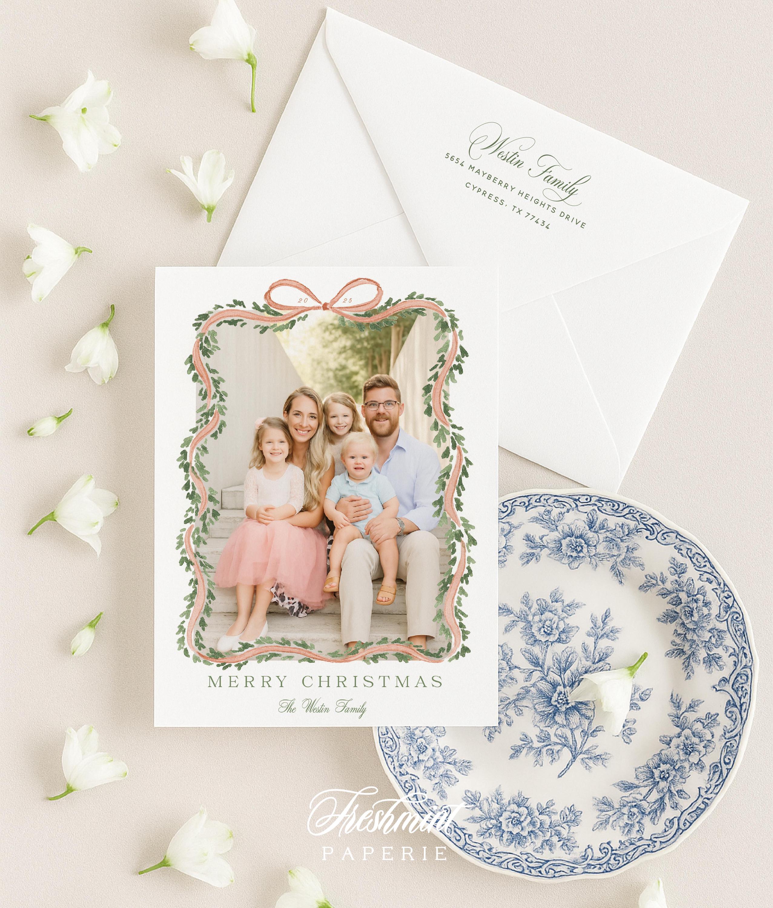Neutral Christmas Photo Cards: Watercolor Wreath Holiday Cards