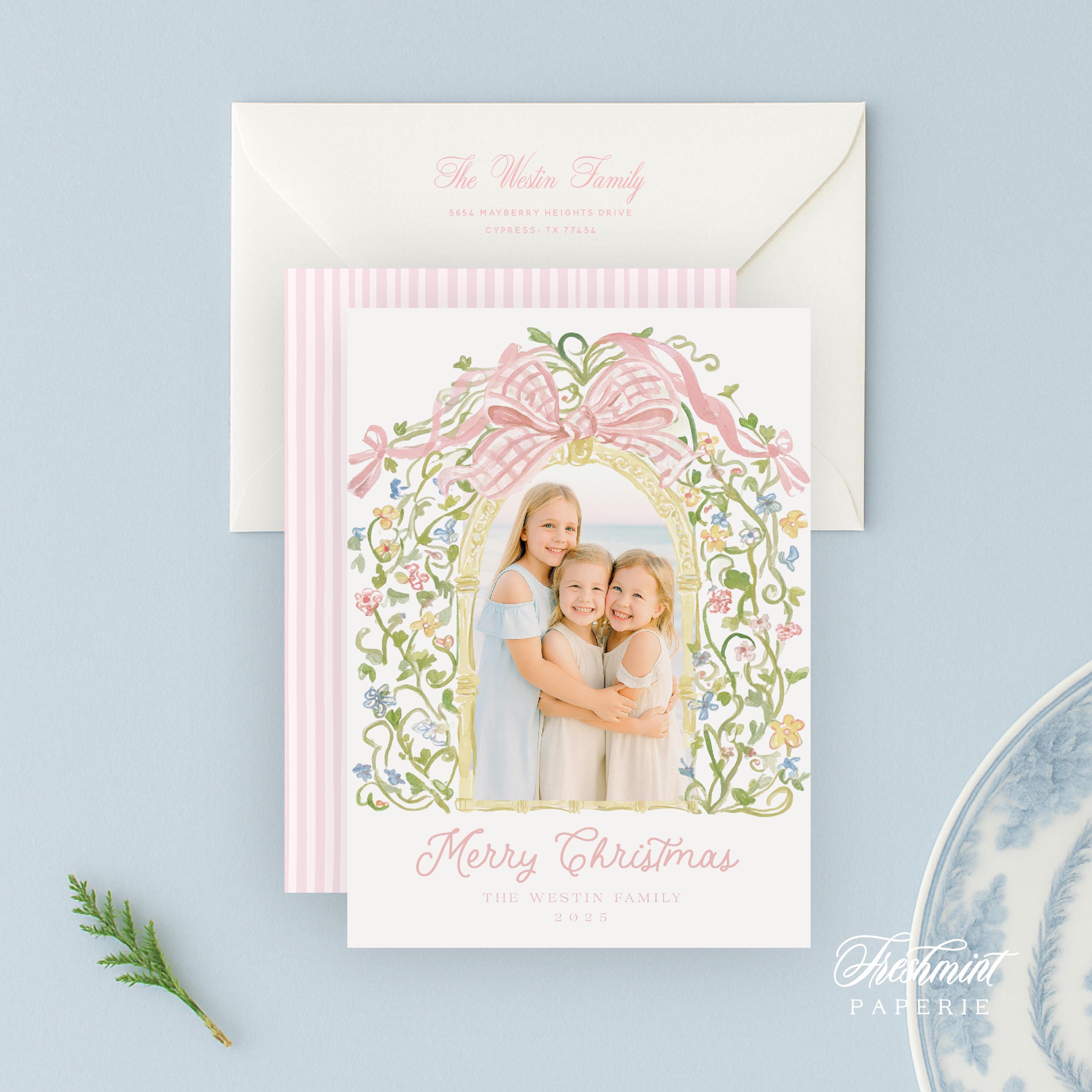 Watercolor Christmas Photo Cards: Gingham Floral Holiday Card