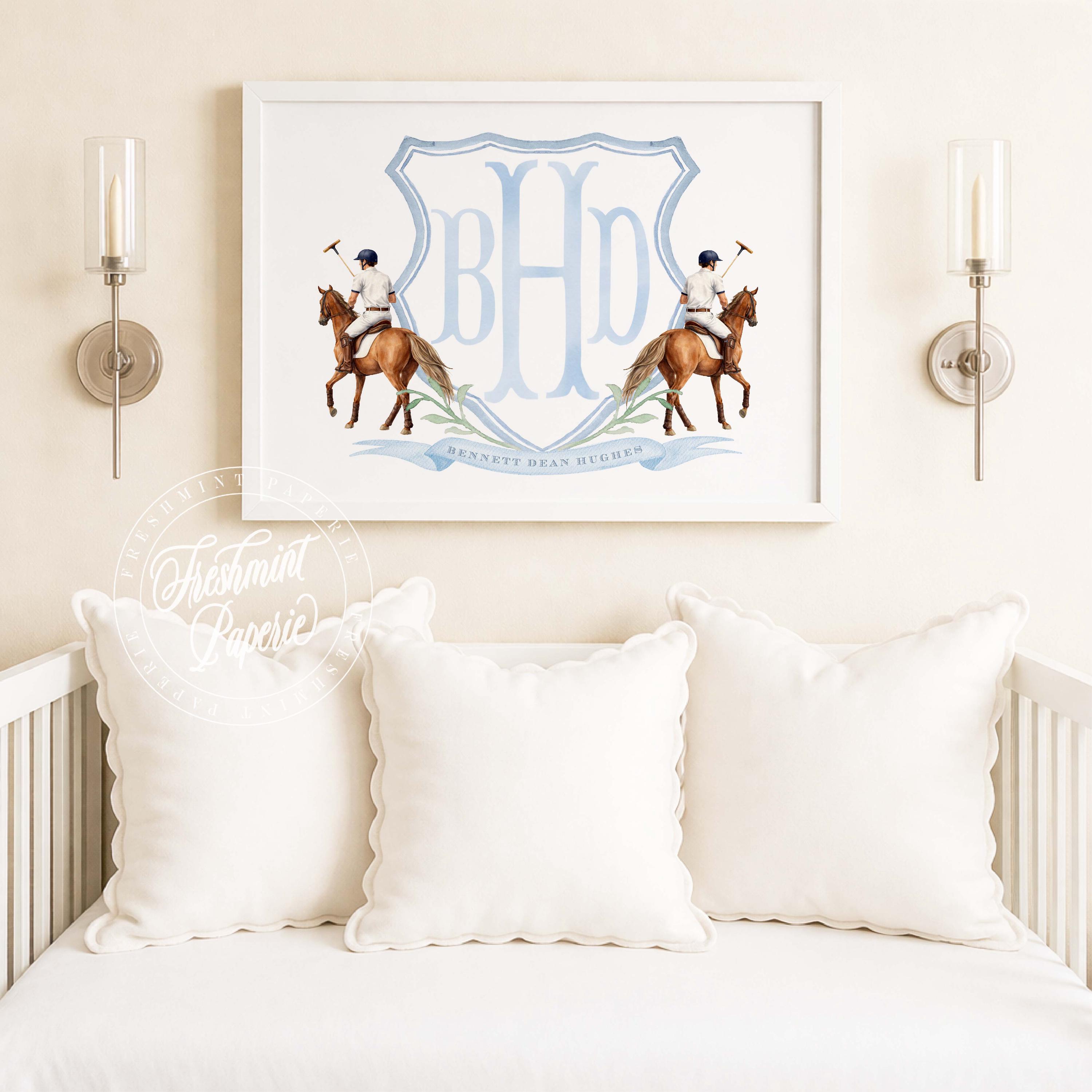 Polo Player Nursery Wall Art, Monogram, Crest, Horse