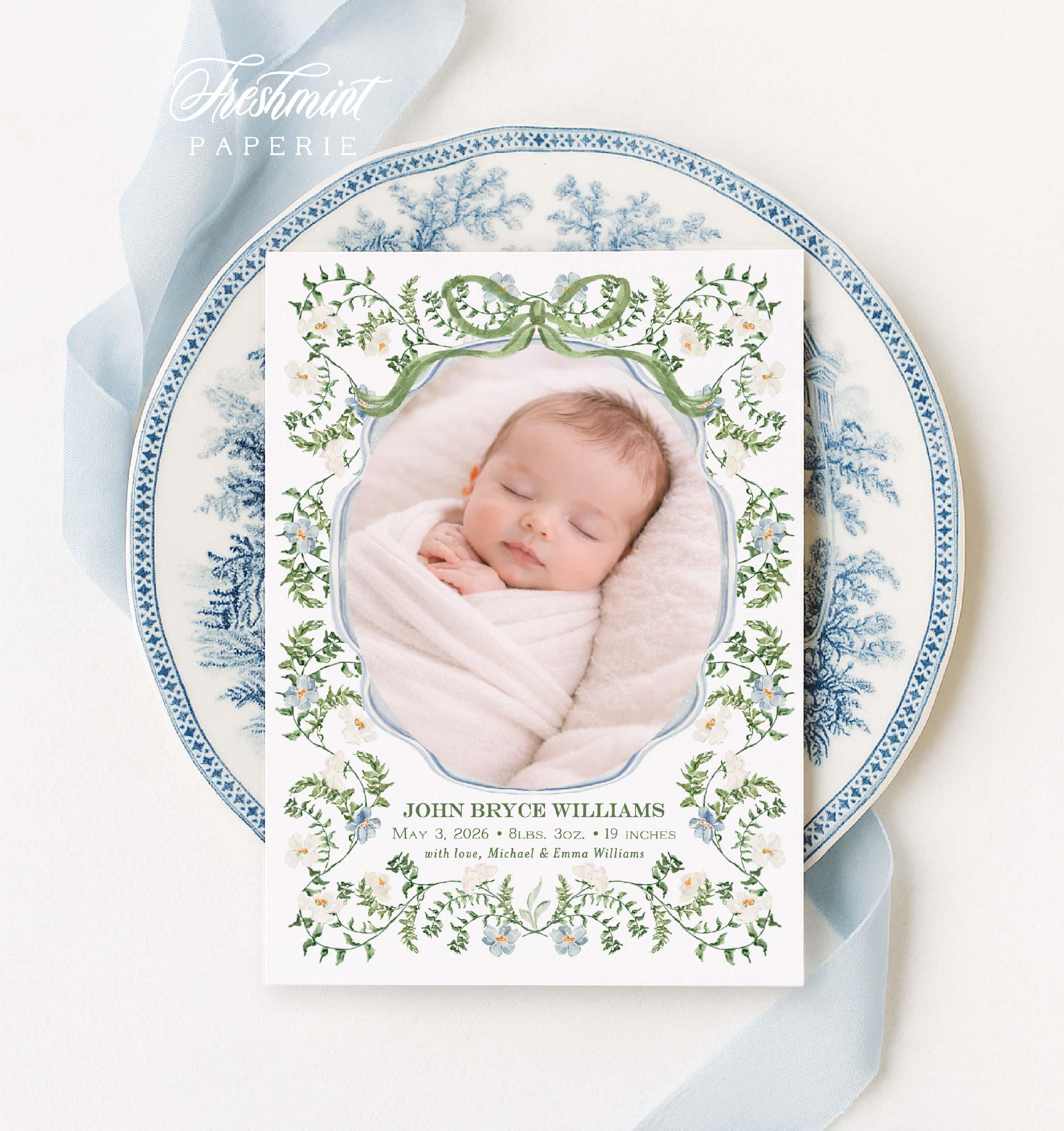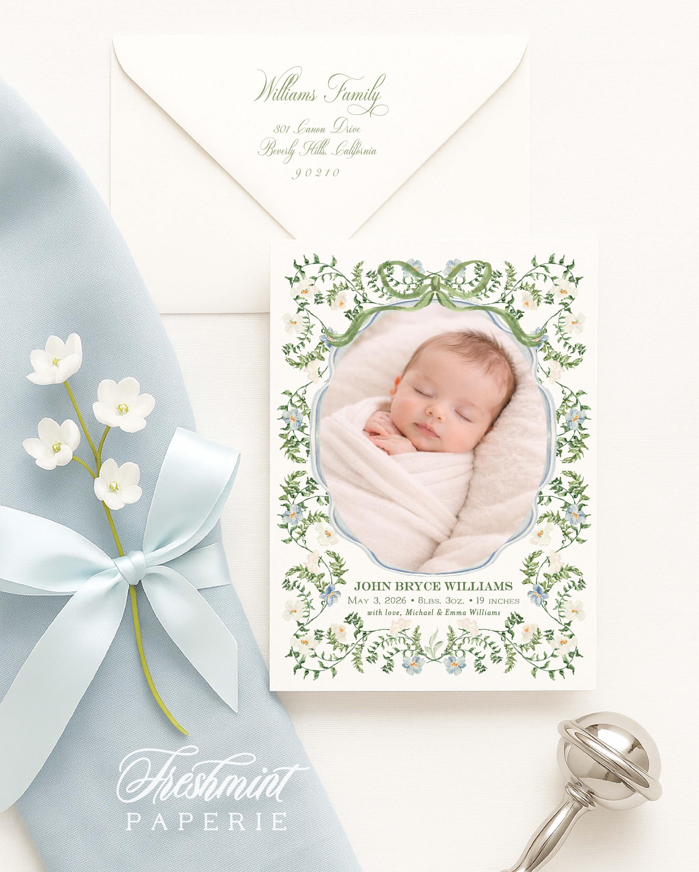 This listing is for beautiful newborn announcement cards featuring delicate watercolor details, perfect for sharing your little one’s arrival.