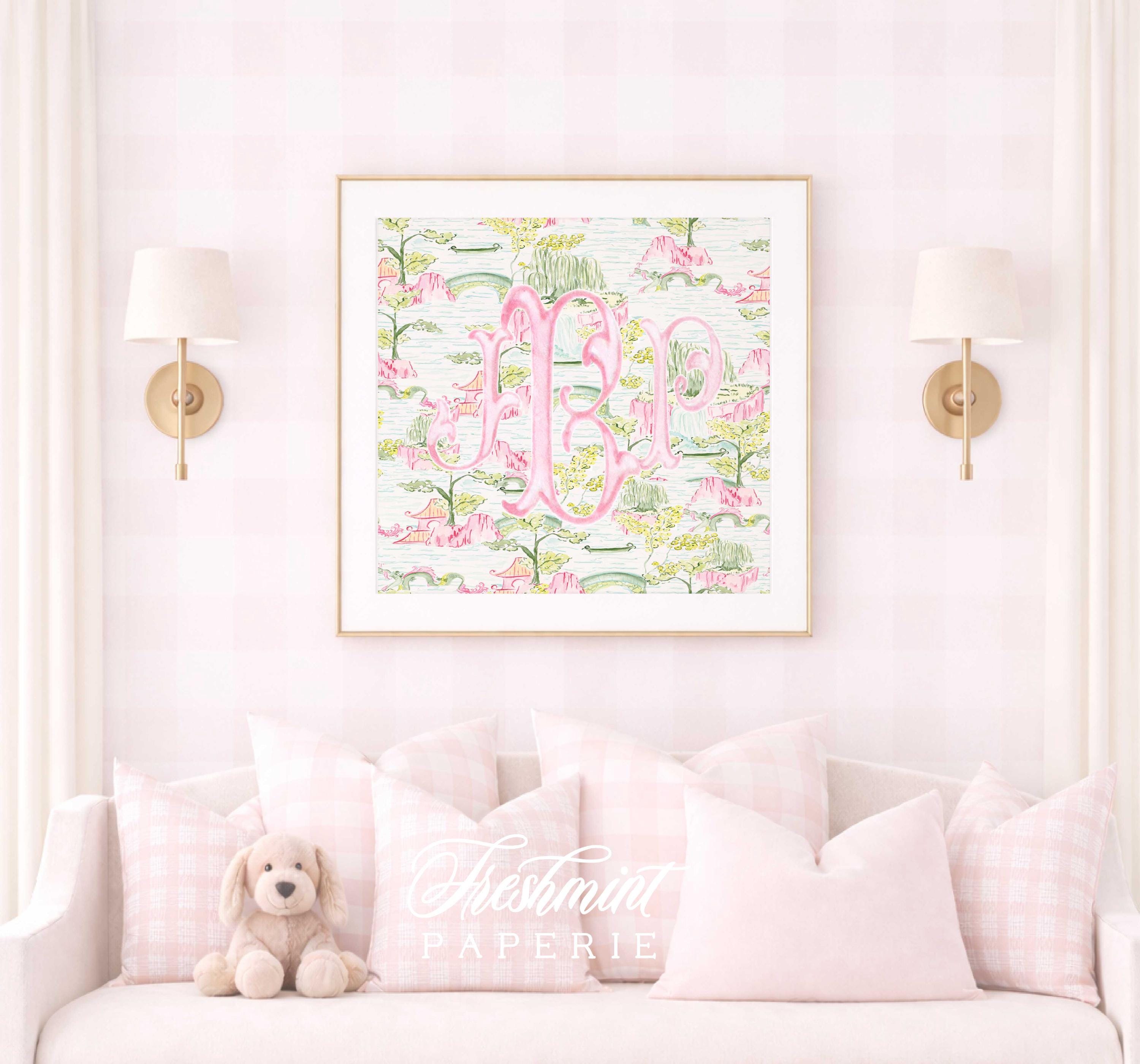 Monogram Wall Art, Chinoiserie, Mahjong, Grandmillennial, Watercolor