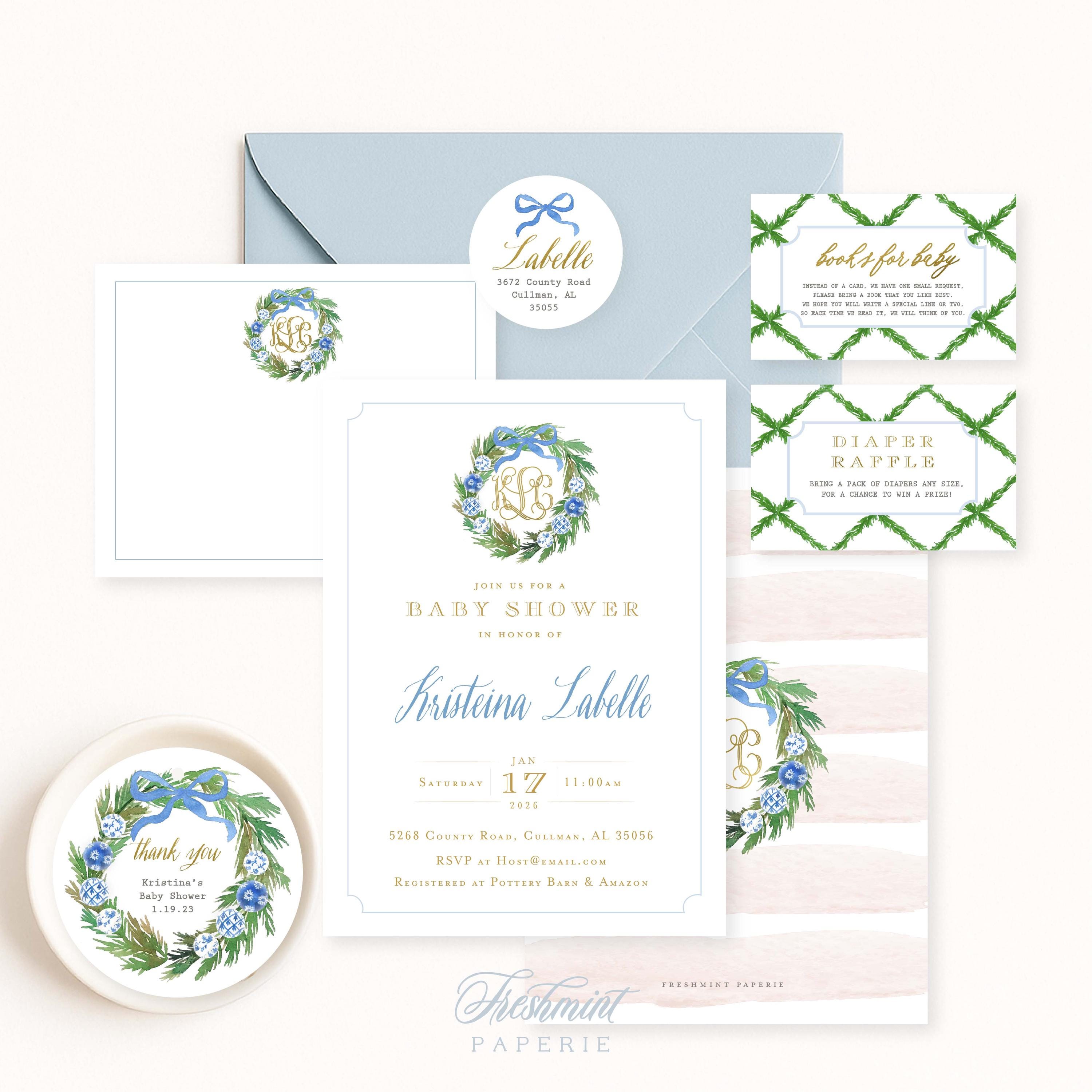 Monogram Baby Shower Invitation - baby shower invitation - baby shower invitation - Chinoiserie ornament invitation