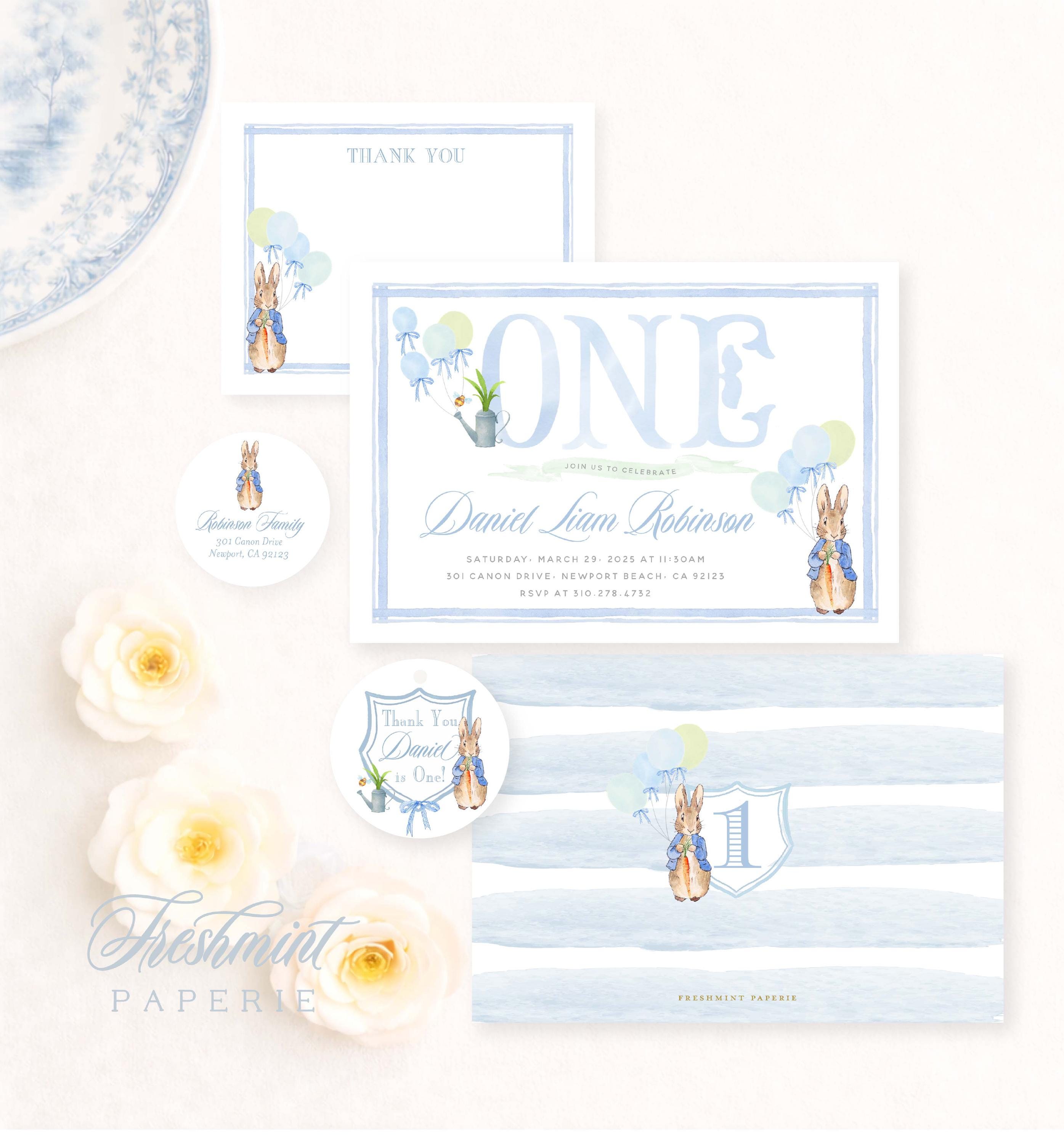 We originally purchased this precious invitation in 2021 for our son’s Peter Rabbit themed first birthday party (and baby #2’s gender reveal!) We loved how the invitations turned out and we received so many compliments on them so, 16 months later, we ordered them again for our second son’s first birthday party!
