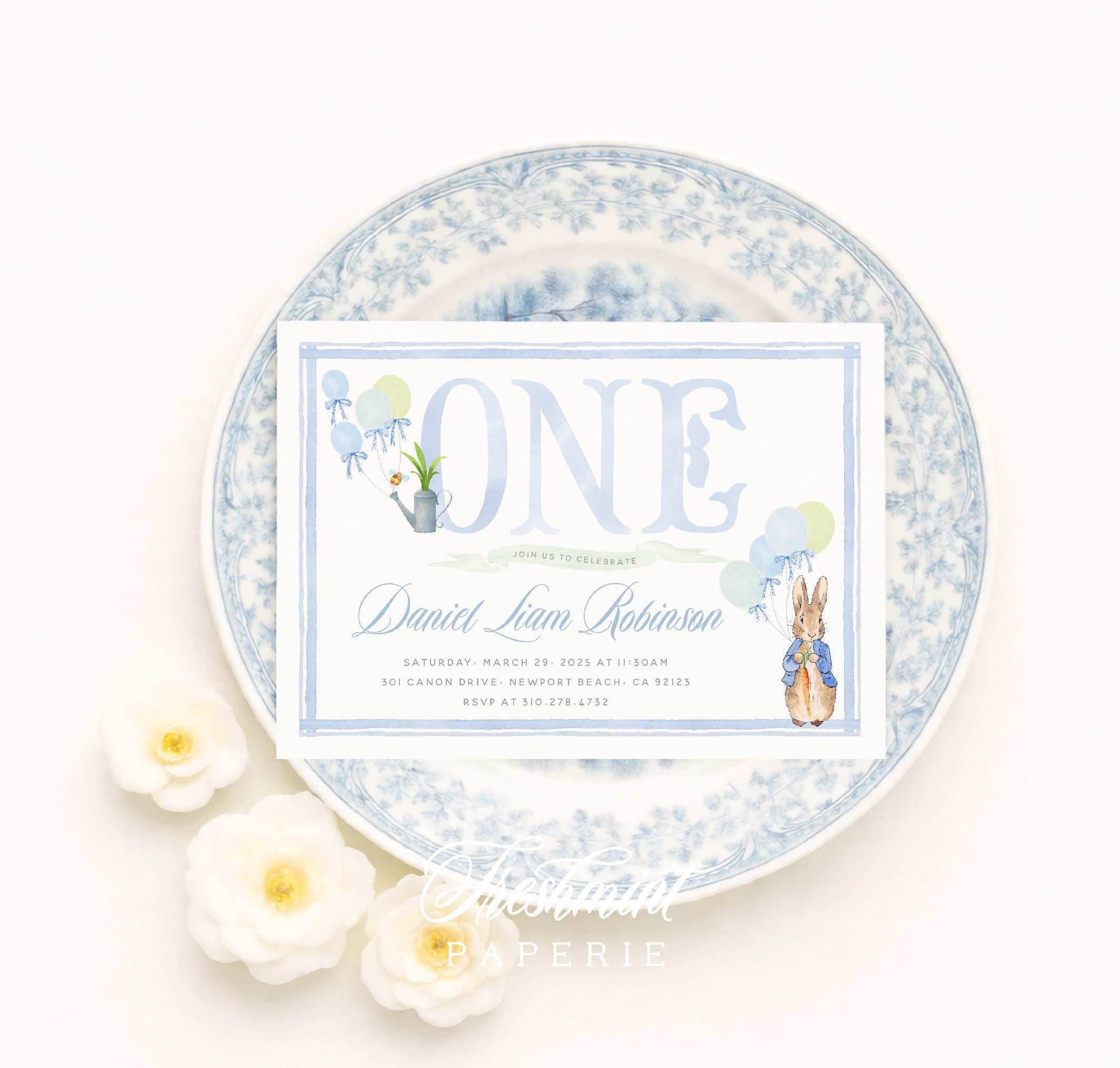 Bunny Birthday Invitation | Watercolor Peter Rabbit